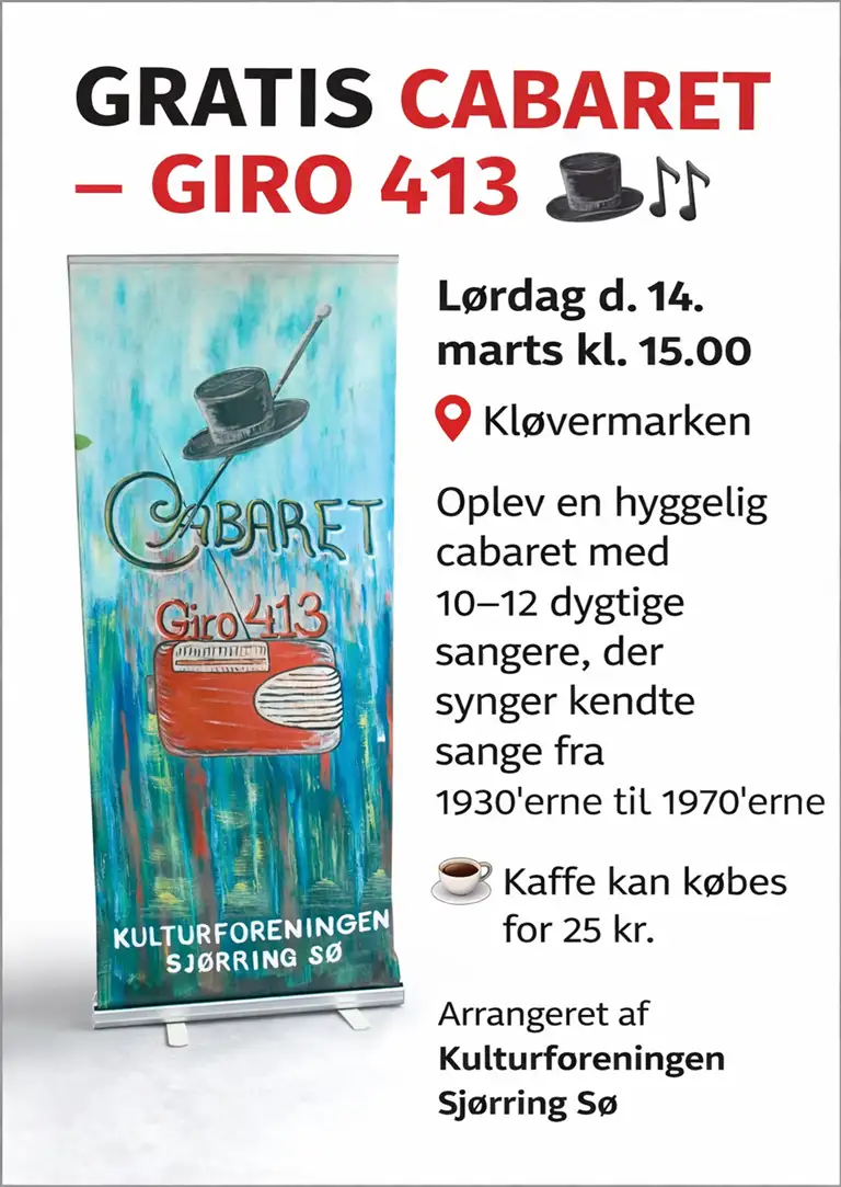 Oplev en hyggelig Cabaret med 10-12 dygtige sangere, der synger kendte sange fra 1930erne til 1970 erne. Kaffe kan købes til 25 kr. Alle er velkommen.